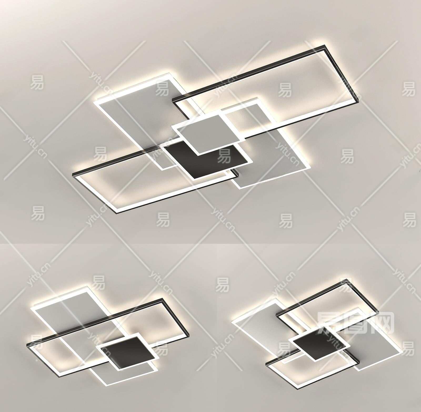 现代时尚几何吸顶灯3D模型下载