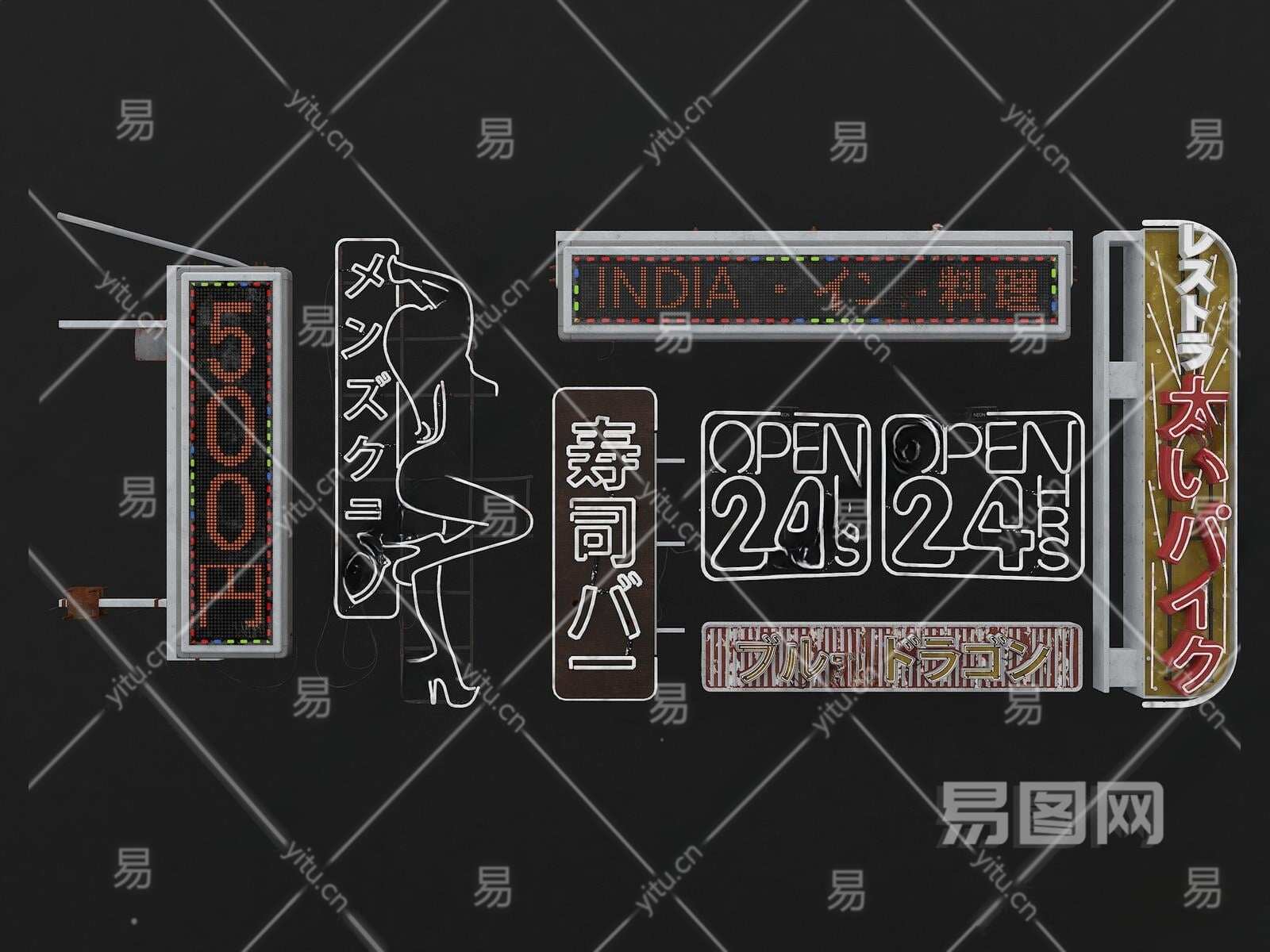 现代霓虹灯3D模型下载