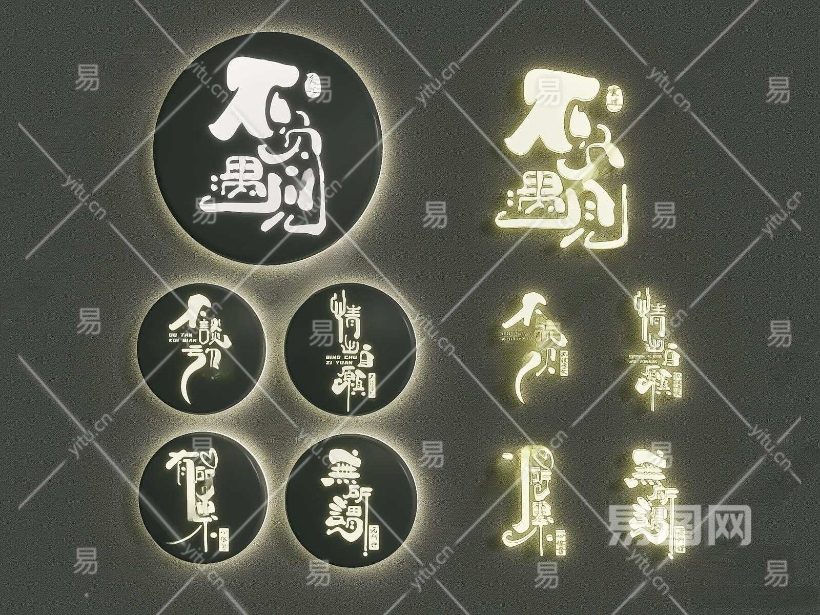 新中式书法字体灯箱3D模型下载