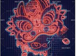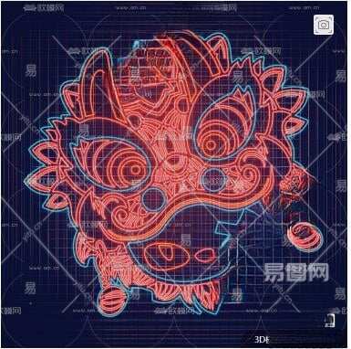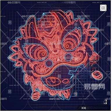 现代国潮醒狮霓虹灯3D模型下载