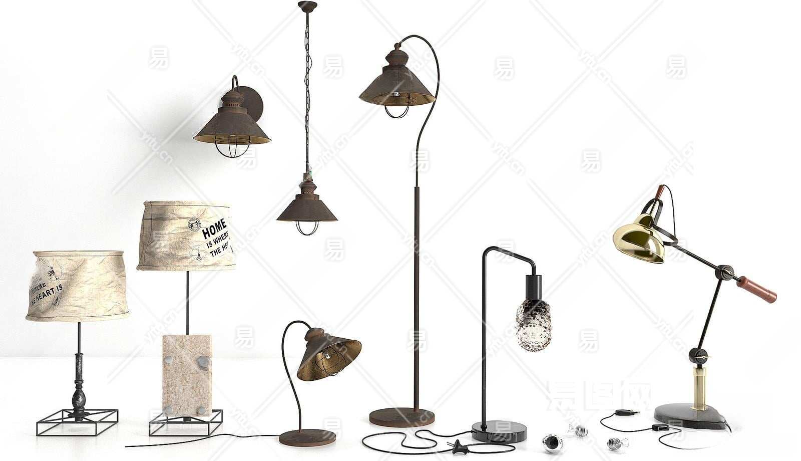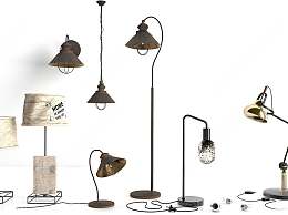 工业风灯具组合3D模型下载