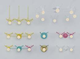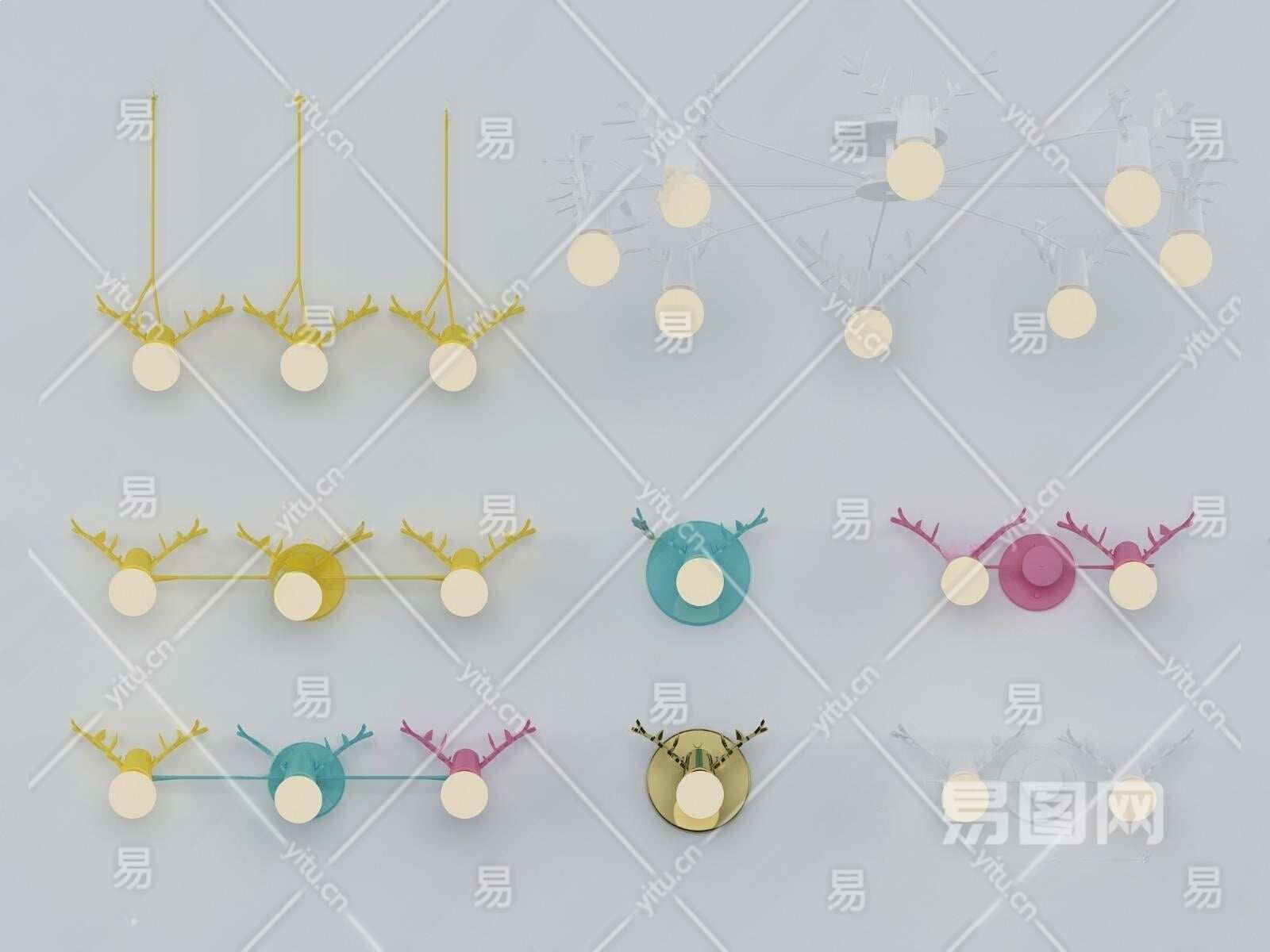 北欧网红小鹿角灯具组合3D模型下载