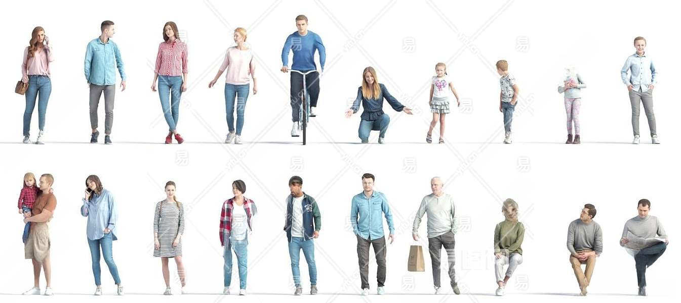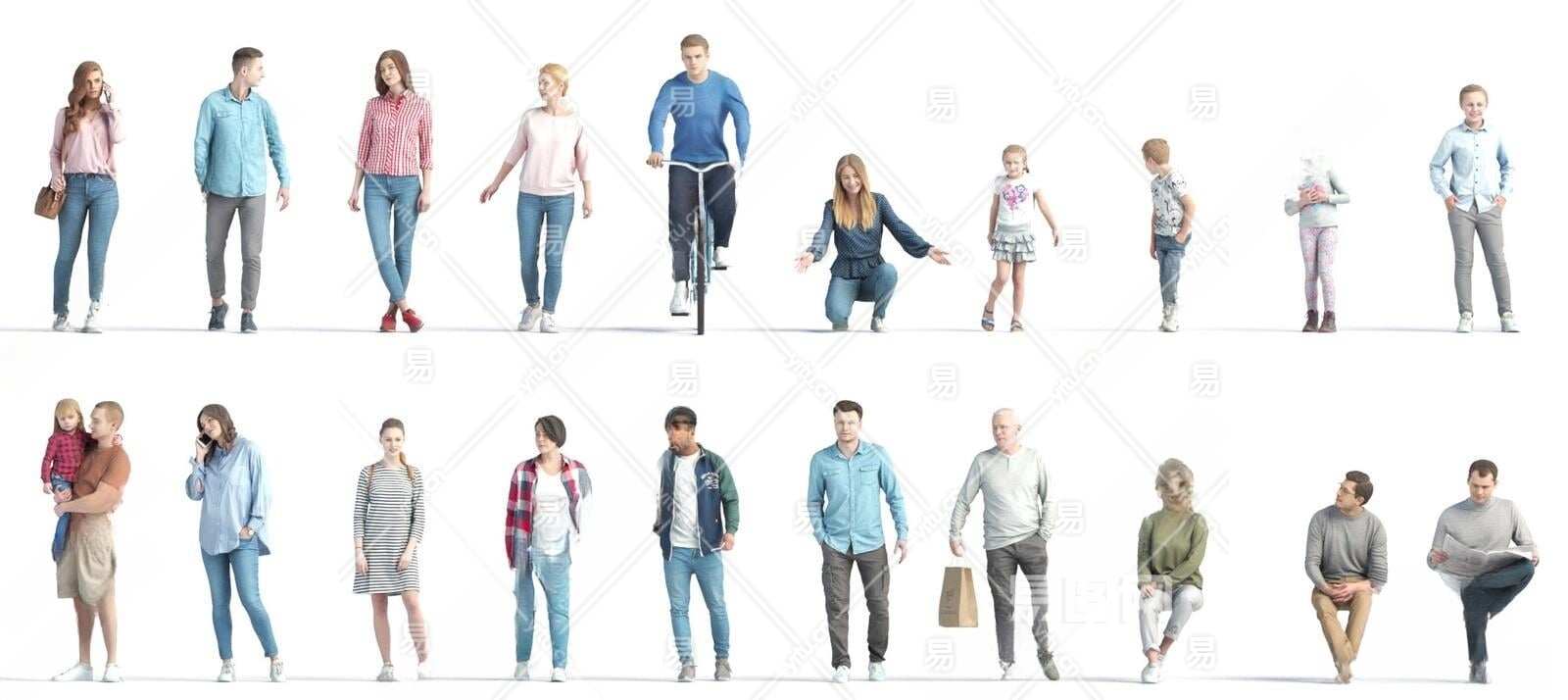 现代多人3D模型下载
