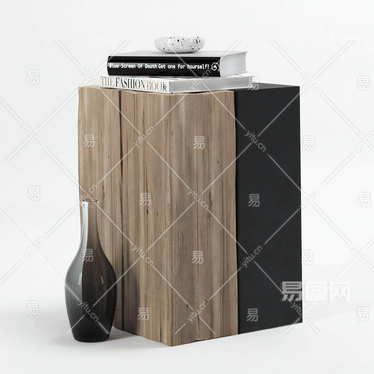 现代实木边几 凳子 书 摆件