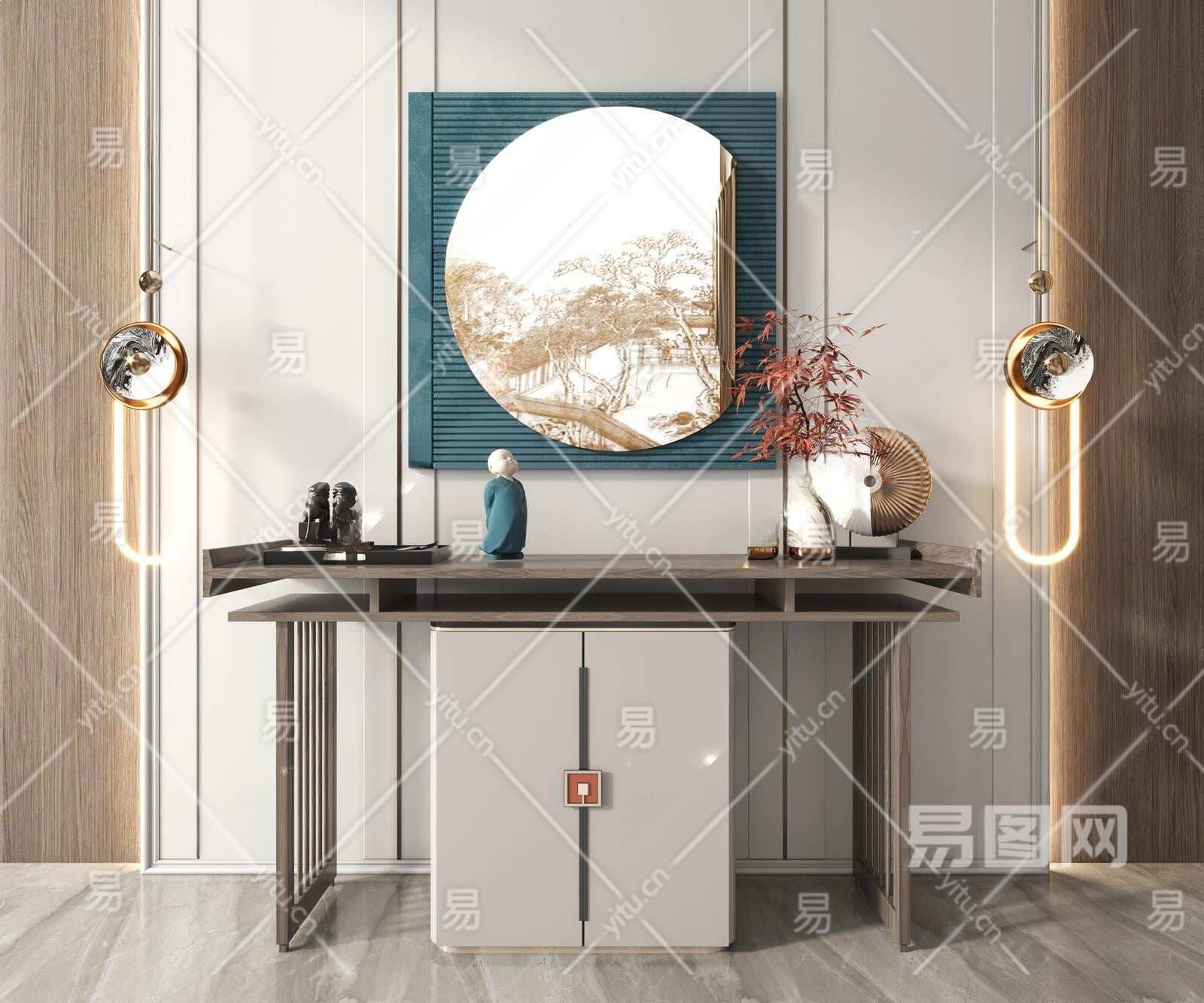 新中式玄关柜3D模型下载