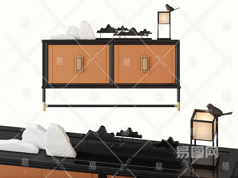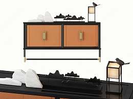 新中式边柜3D模型下载