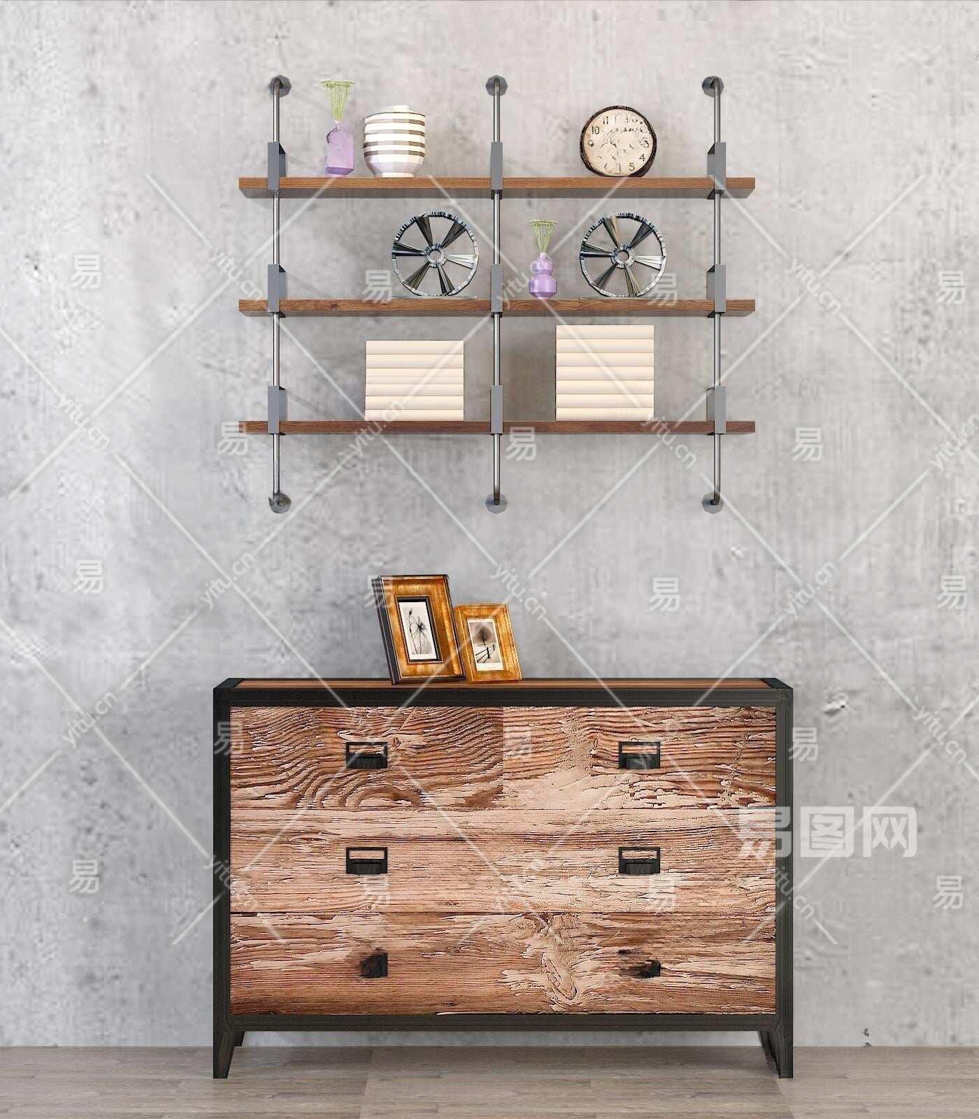 工业风边柜3D模型下载