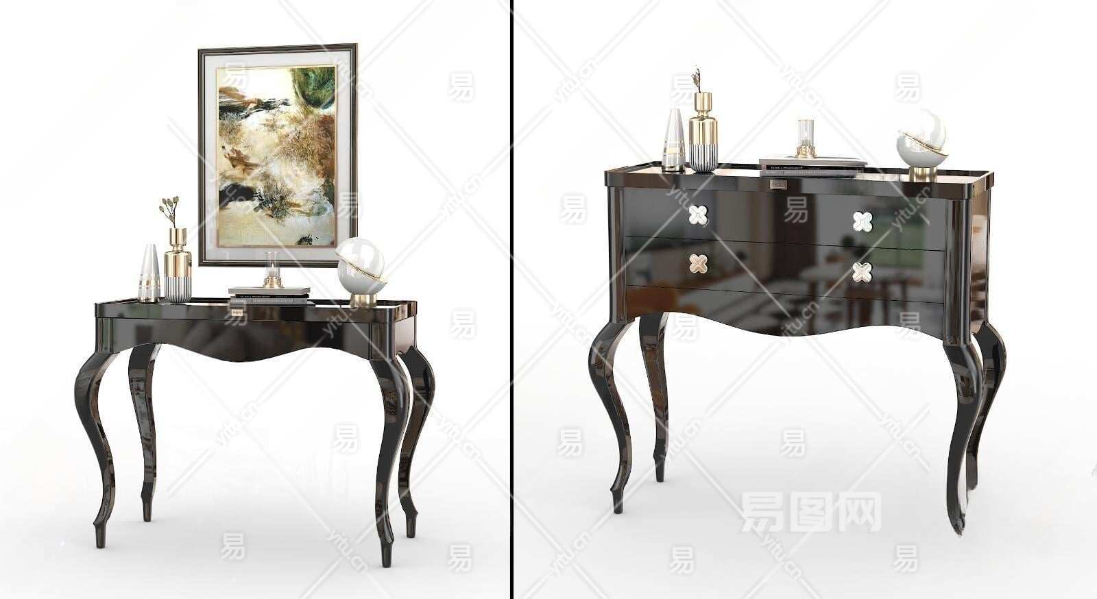 新古典玄关边柜组合3D模型下载