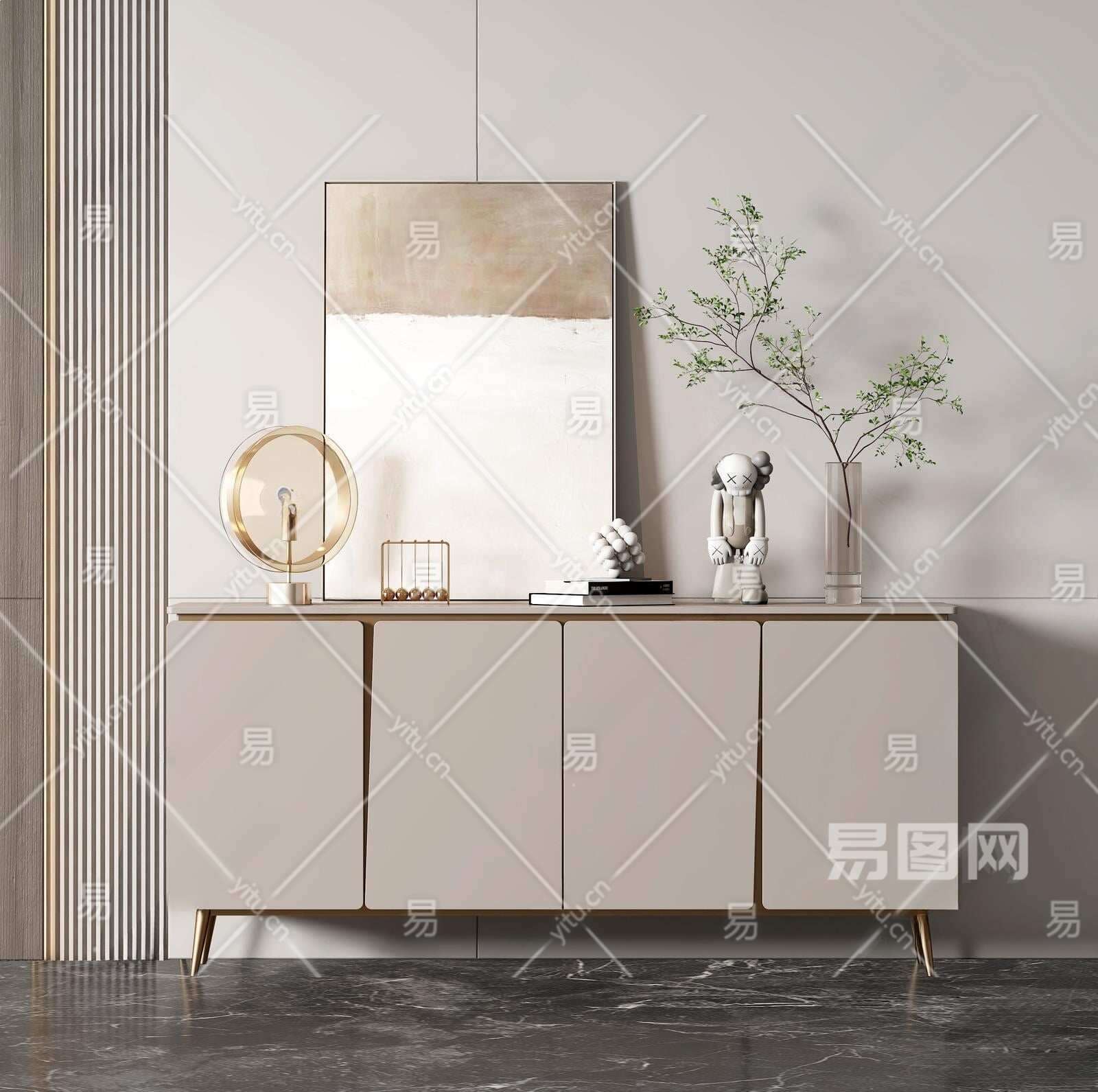 现代玄关柜3D模型下载