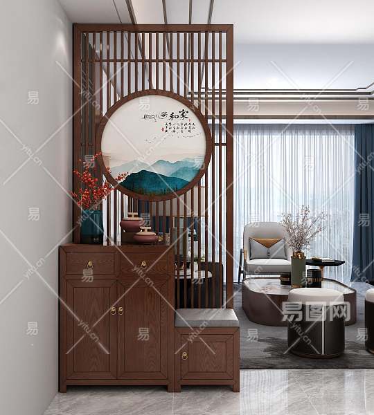 中式玄关柜3D模型下载