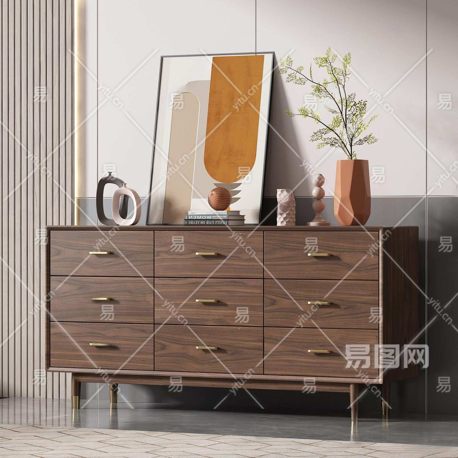 现代玄关柜3D模型下载