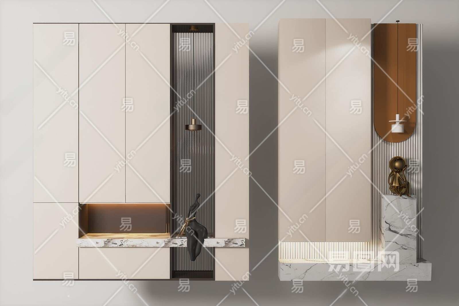 现代玄关柜3D模型下载