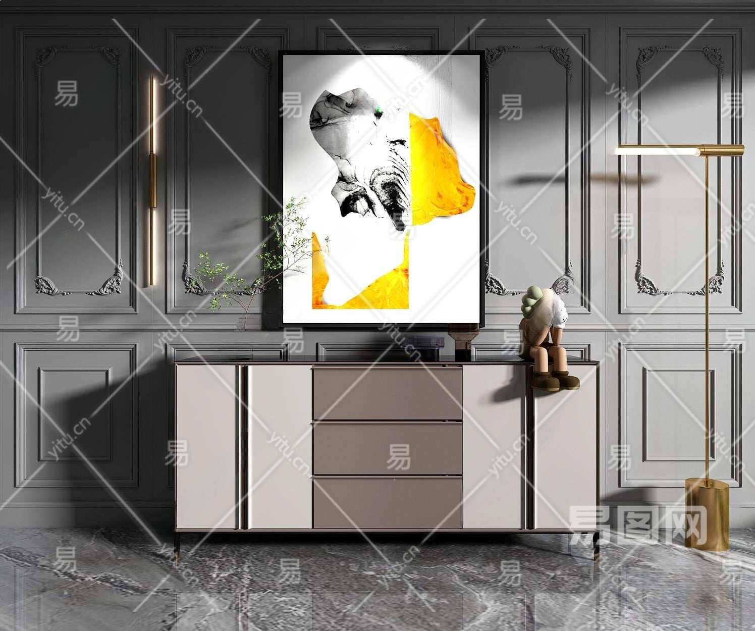 现代玄关柜3D模型下载