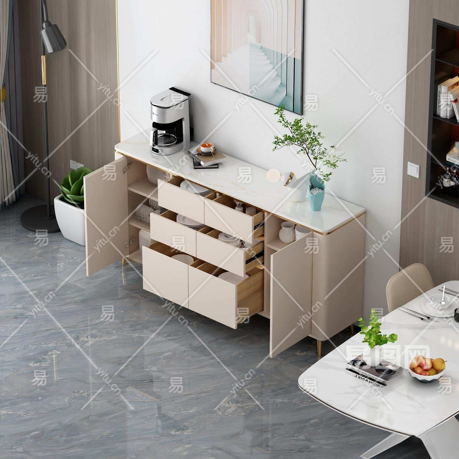 现代餐边柜3D模型下载