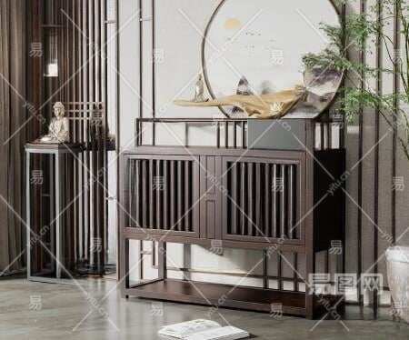 新中式玄关柜3D模型下载