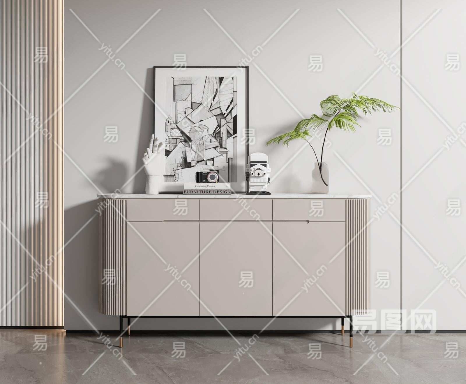 现代玄关柜3D模型下载