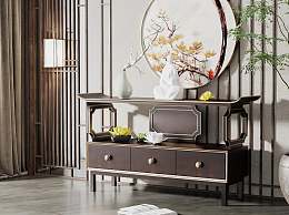 新中式玄关柜3D模型下载