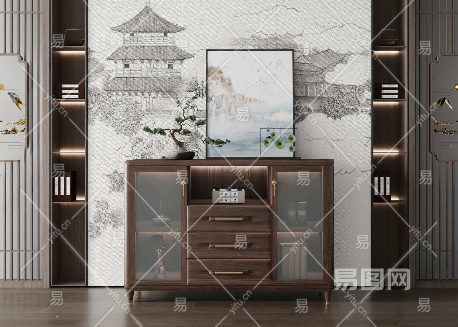 当前的位置:首页 > 3D模型 > 柜子 > 边柜玄关柜 > 新中式餐边柜3D模型下载