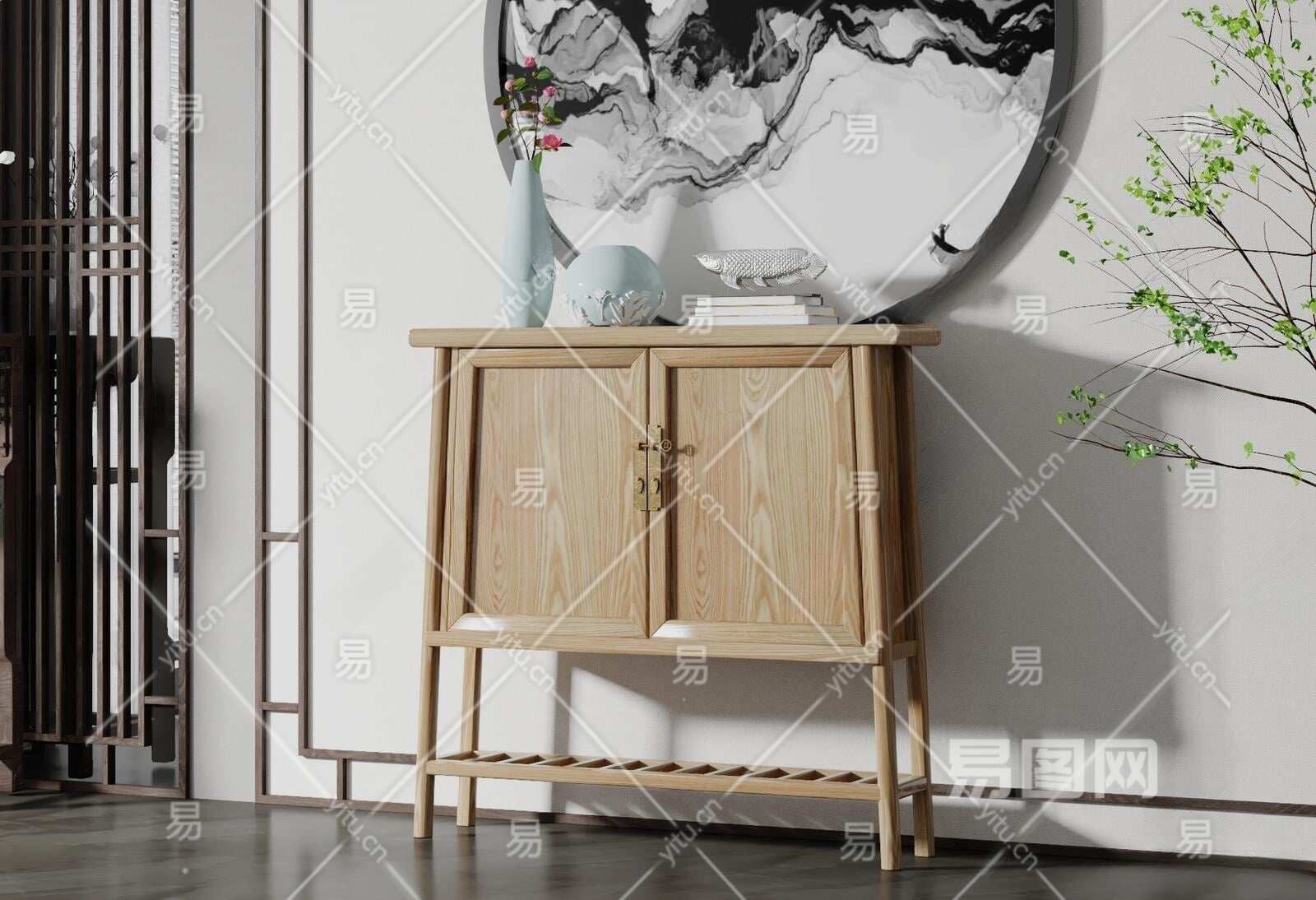 新中式玄关柜3D模型下载