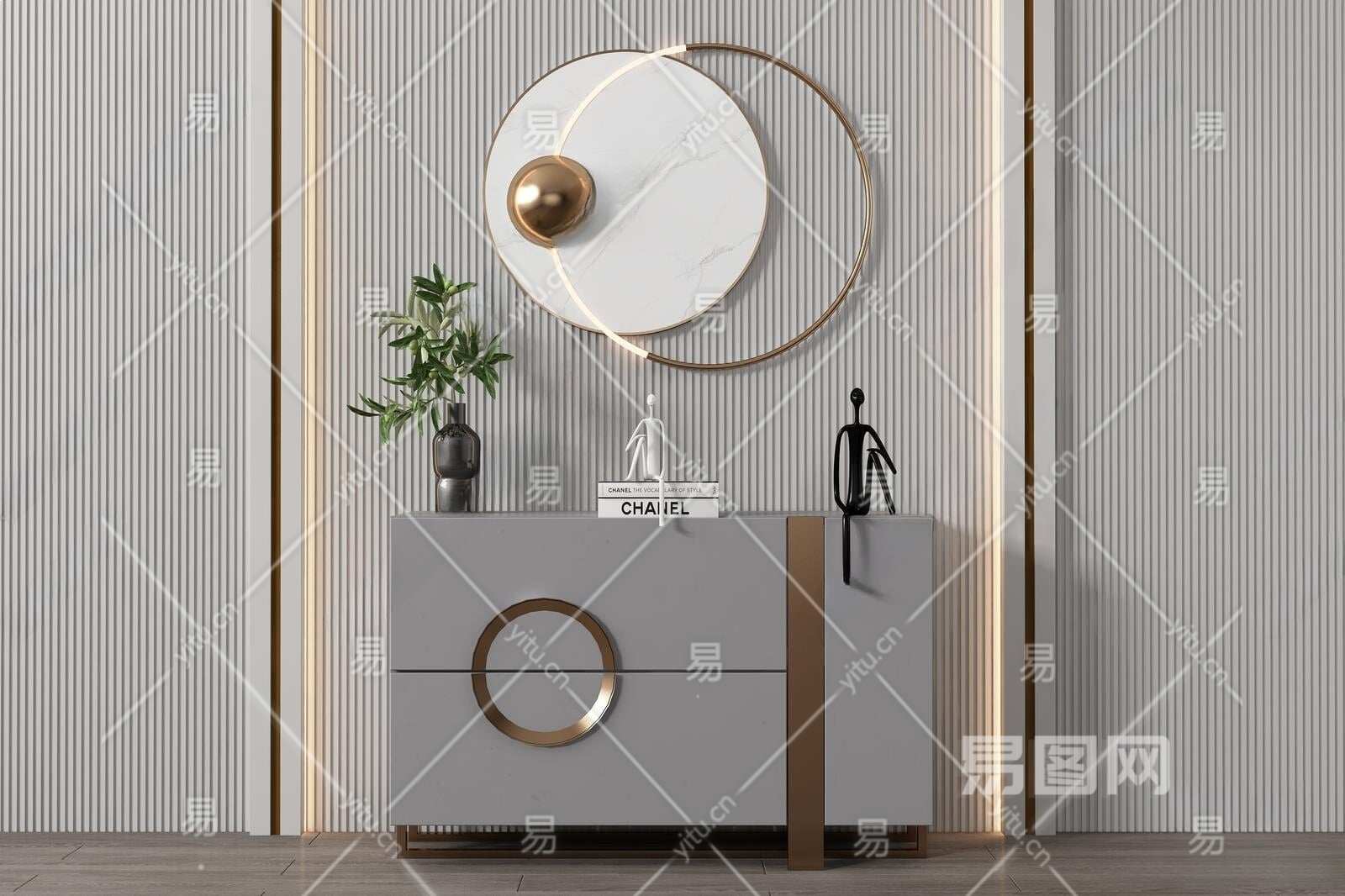 现代玄关柜3D模型下载