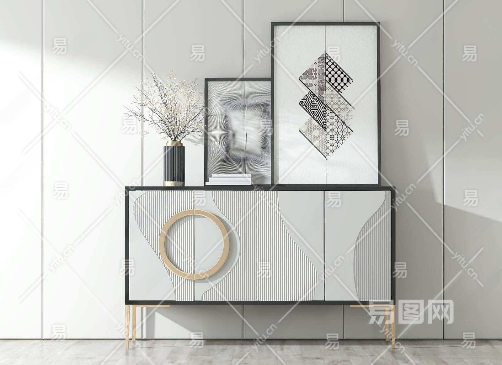 现代玄关柜3D模型下载