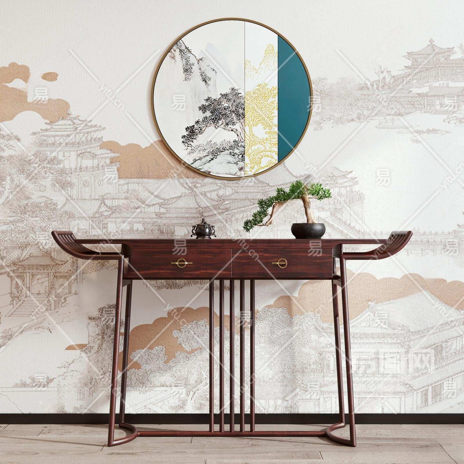新中式端景条案3D模型下载
