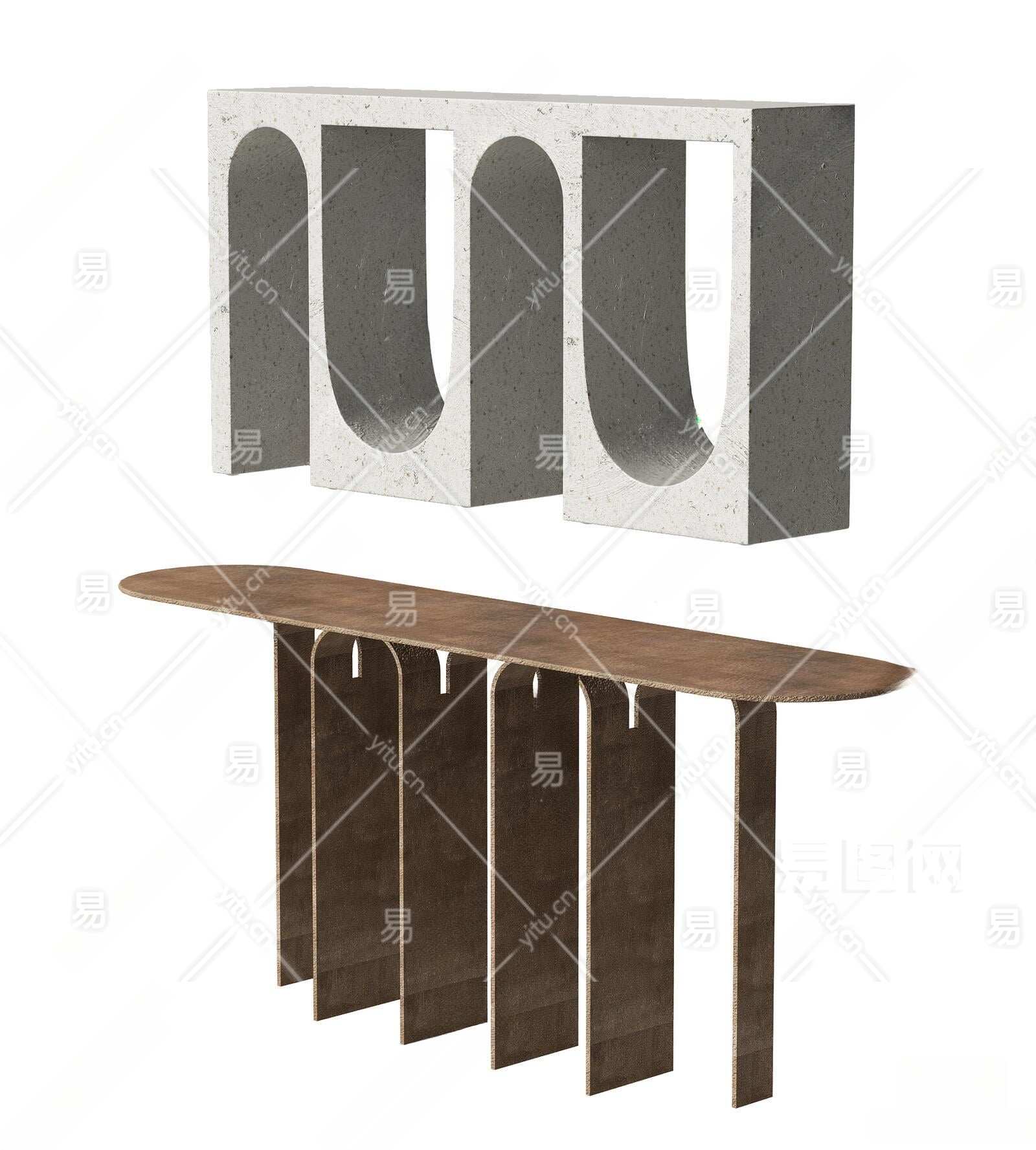 现代端景条案3D模型下载