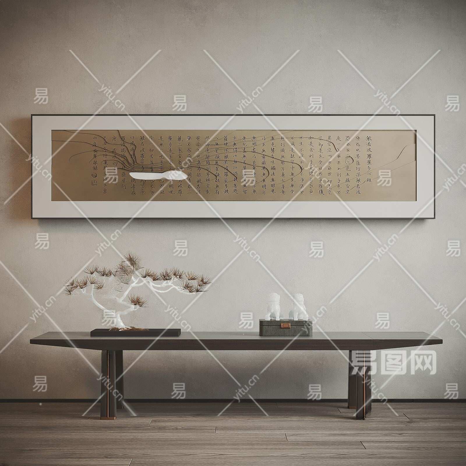新中式端景条案3D模型下载