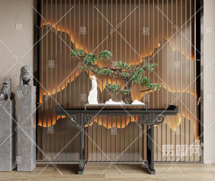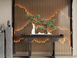 新中式端景条案3D模型下载