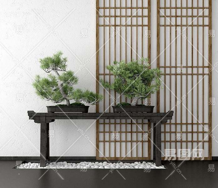 新中式端景条案3D模型下载