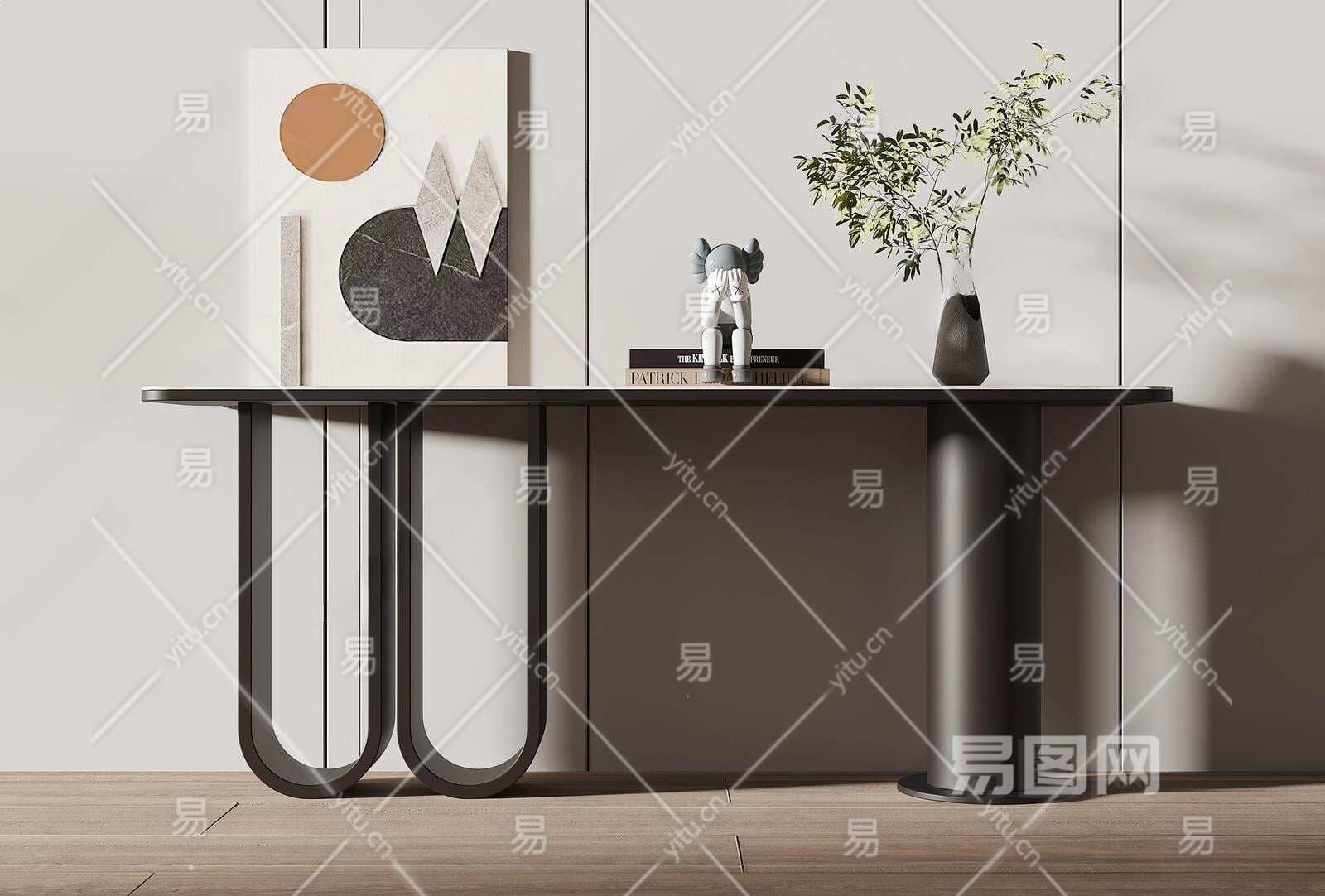 现代端景条案3D模型下载