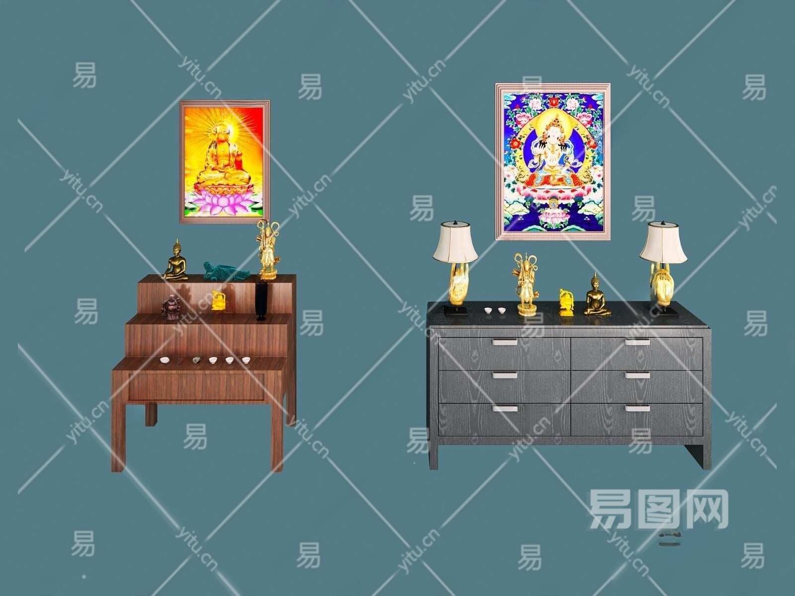 现代风格佛堂佛坛佛龛组合3D模型下载