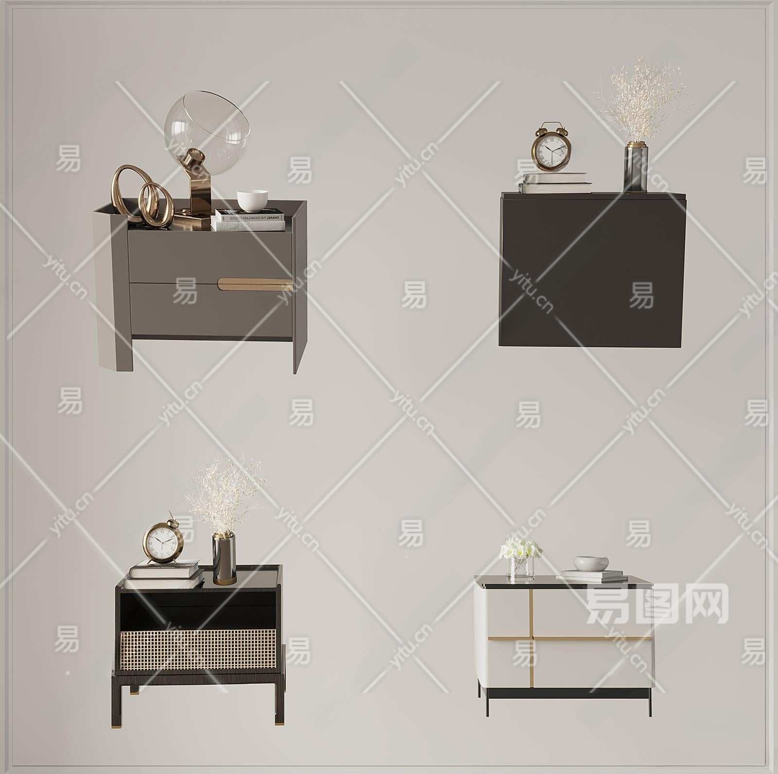 现代床头柜3D模型下载