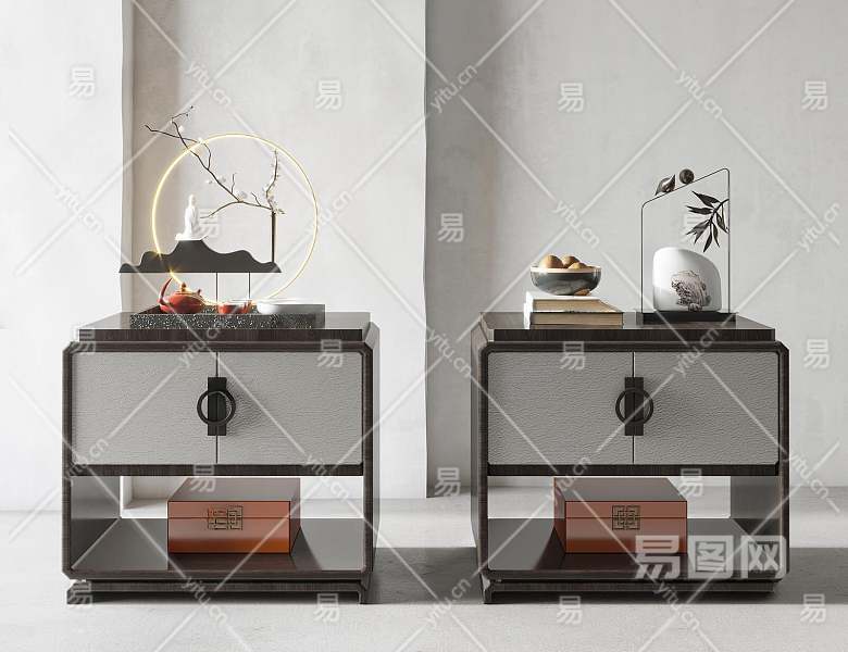 新中式床头柜3D模型下载
