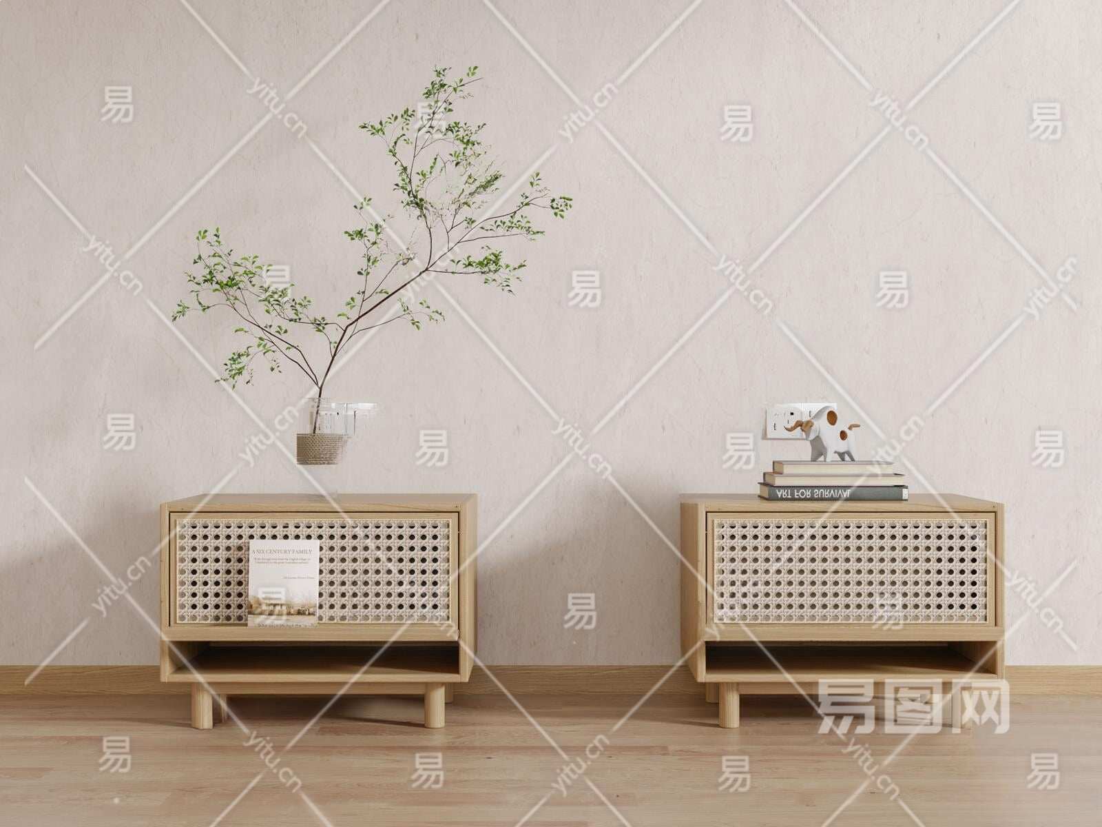 北欧原木床头柜3D模型下载