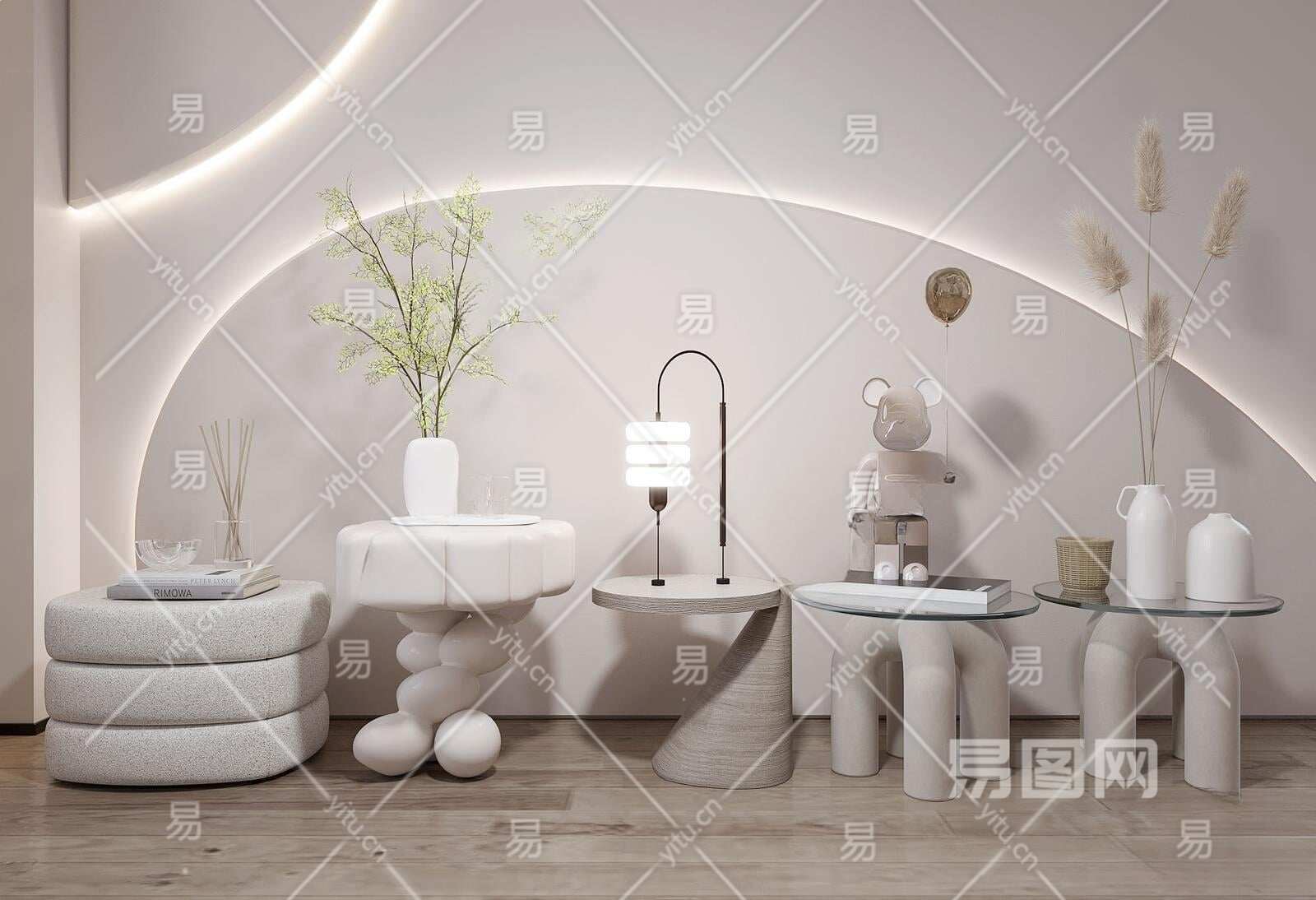 现代奶油风床头柜3D模型下载