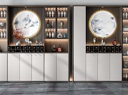 新中式酒柜组合3D模型下载