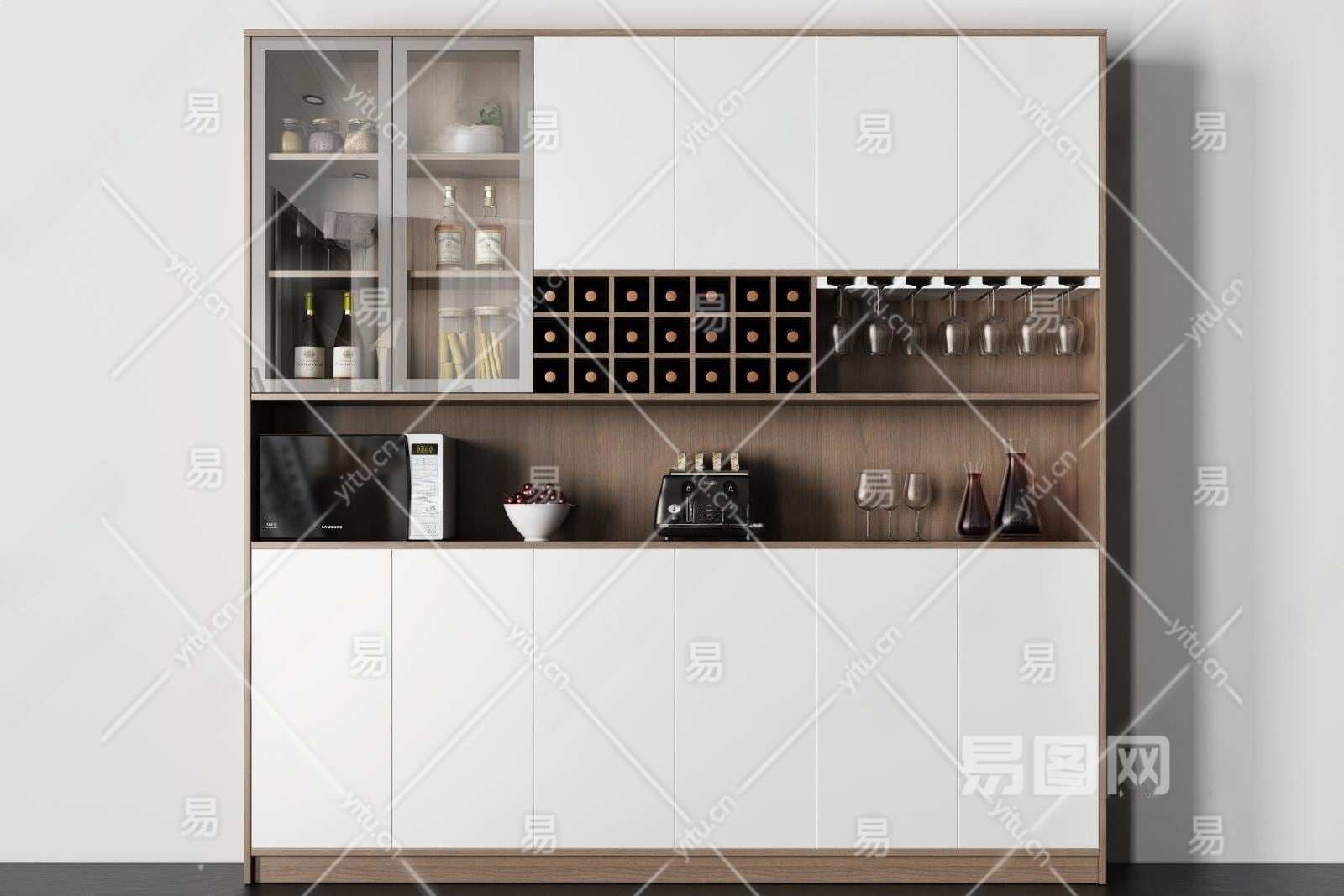 现代实木酒柜3D模型下载