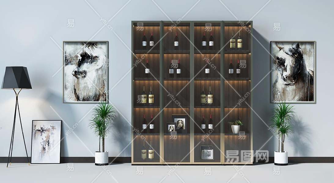 现代玻璃酒柜3D模型下载