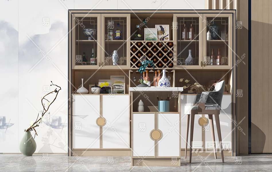 新中式酒柜3D模型下载