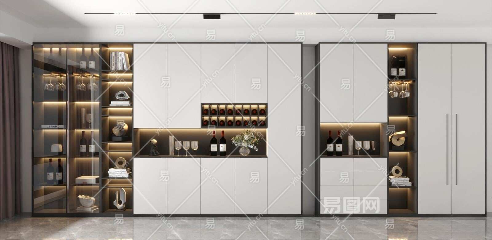 现代酒柜组合3D模型下载
