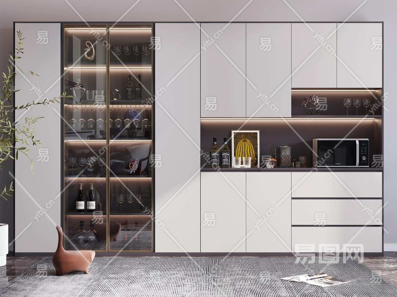 现代酒柜3D模型下载