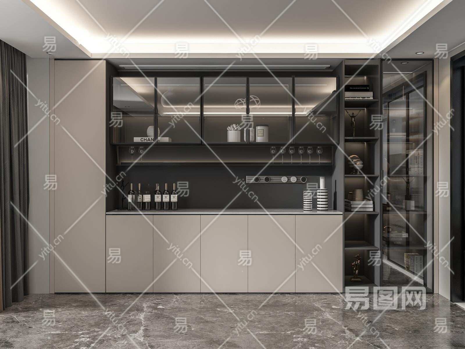 现代酒柜3D模型下载