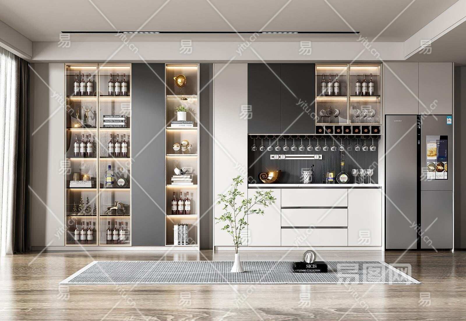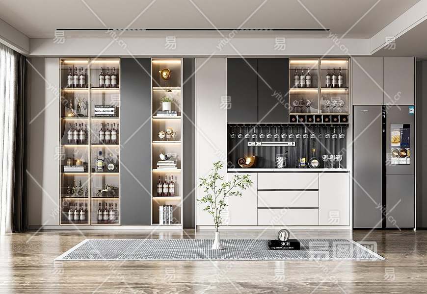 现代酒柜3D模型下载