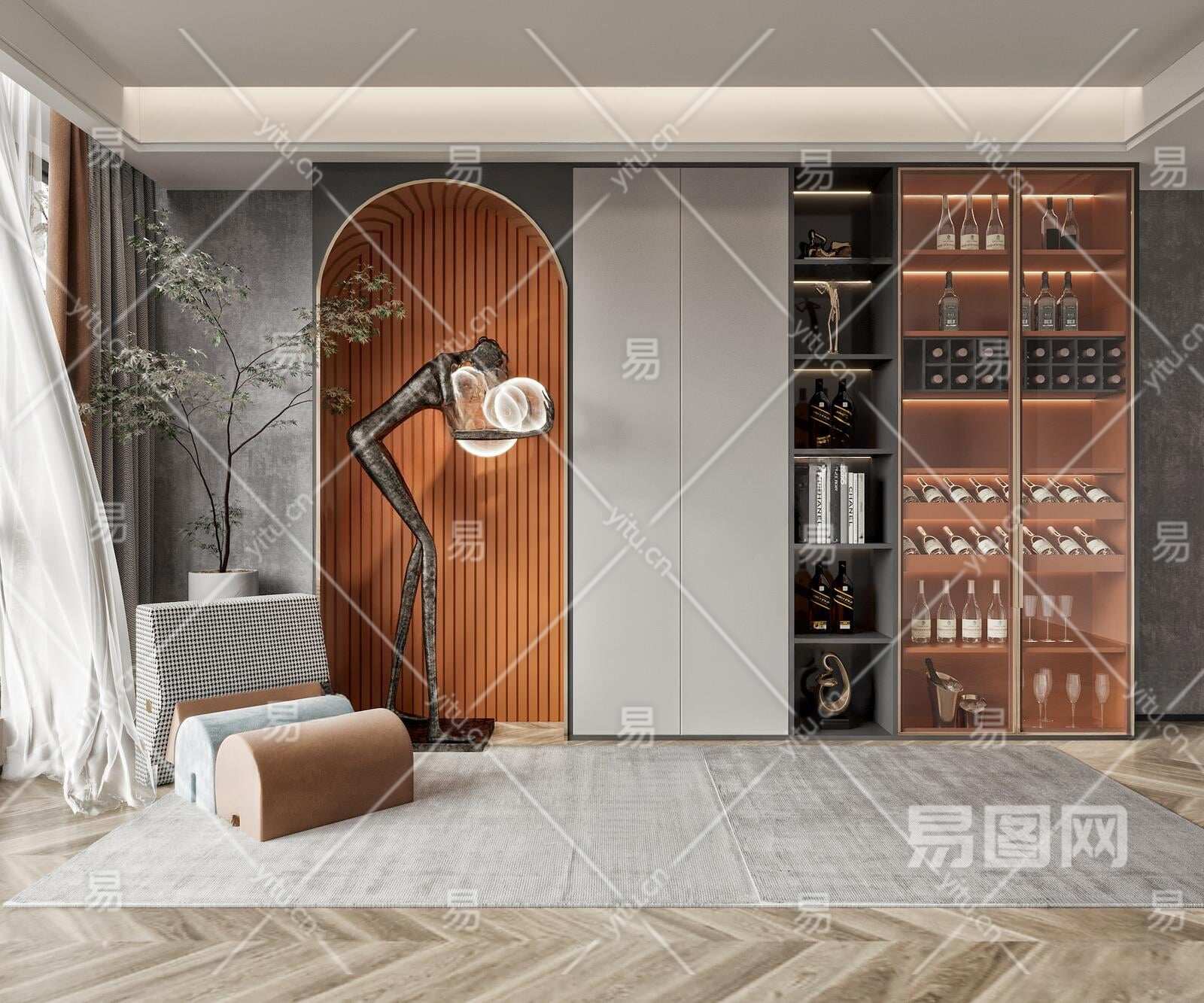 现代酒柜3D模型下载