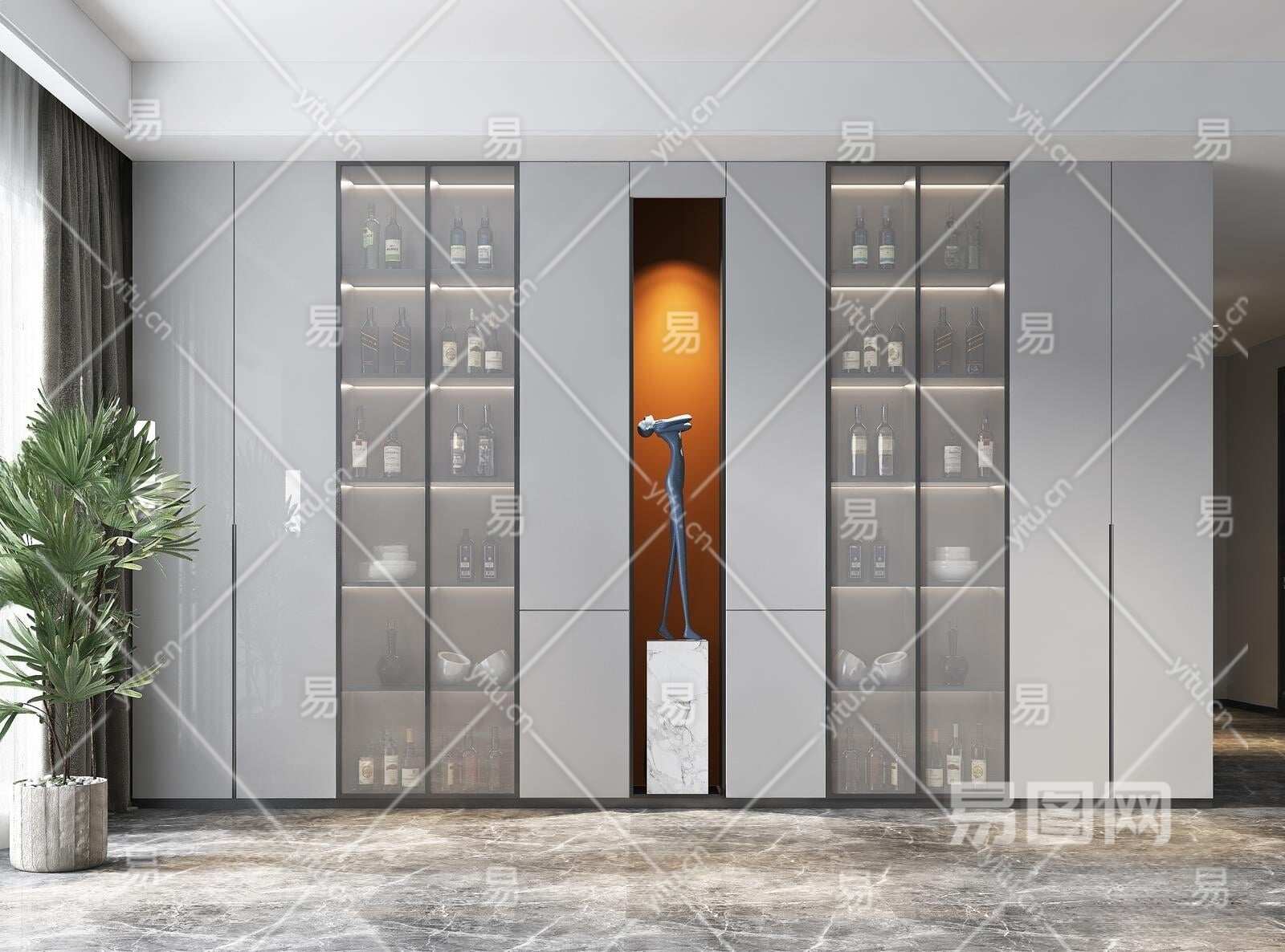 现代酒柜3D模型下载