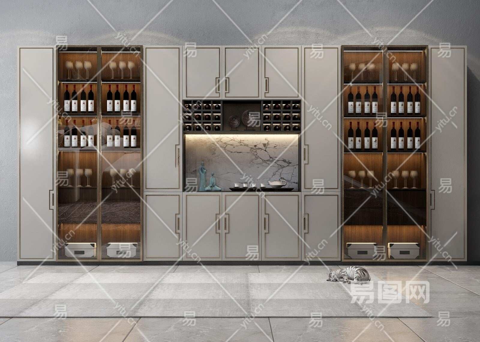 新中式酒柜3D模型下载