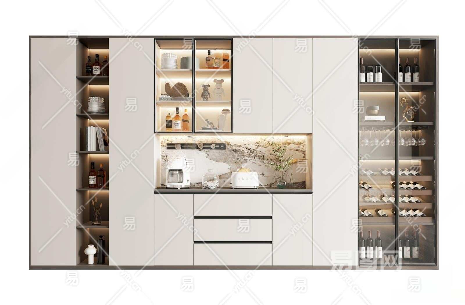 现代酒柜3D模型下载