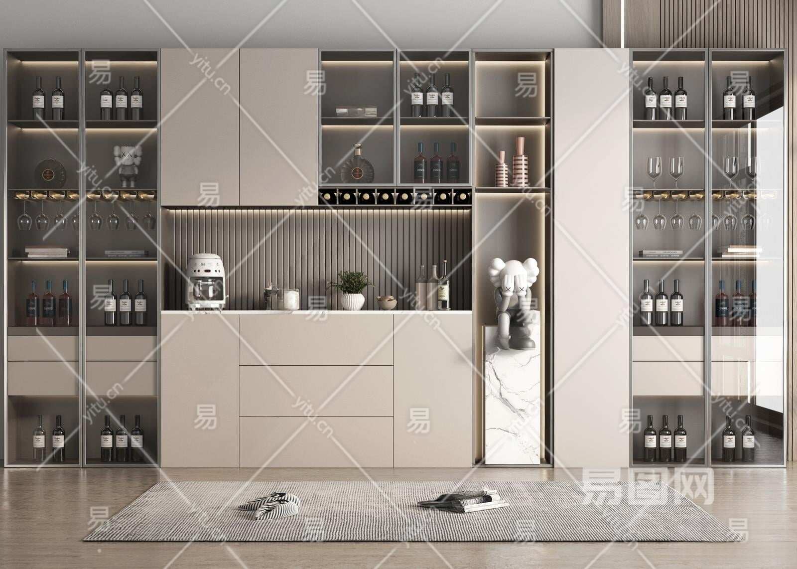 现代酒柜3D模型下载