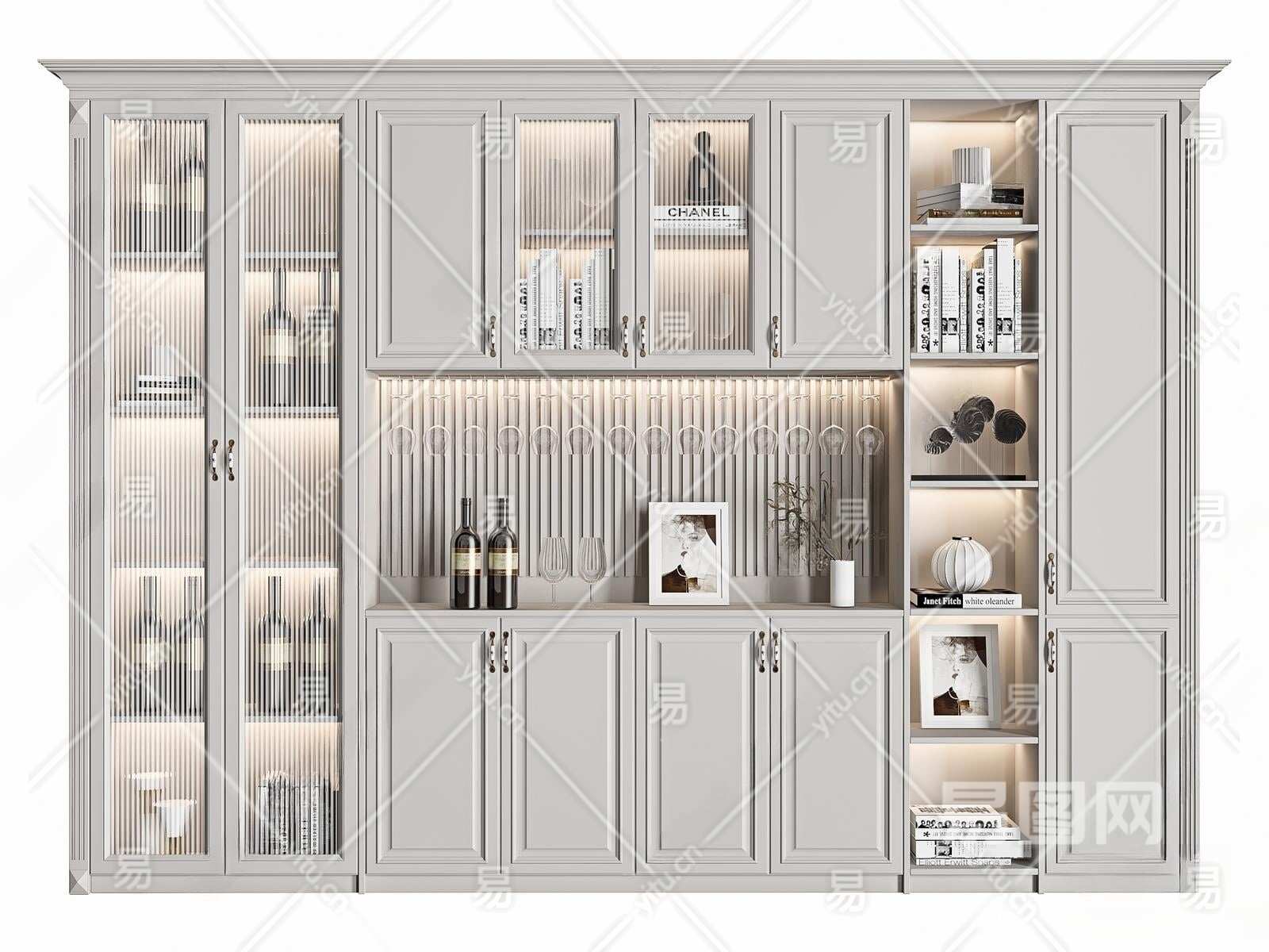 美式酒柜3D模型下载